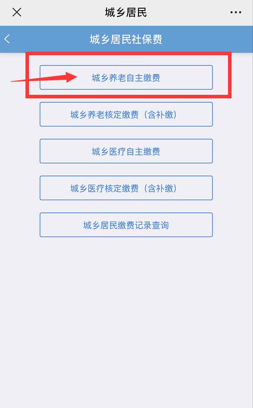 4.点击“城乡居民养老自主缴费”若补缴以前年度,请选择“城乡养老核定缴费(含补缴)”