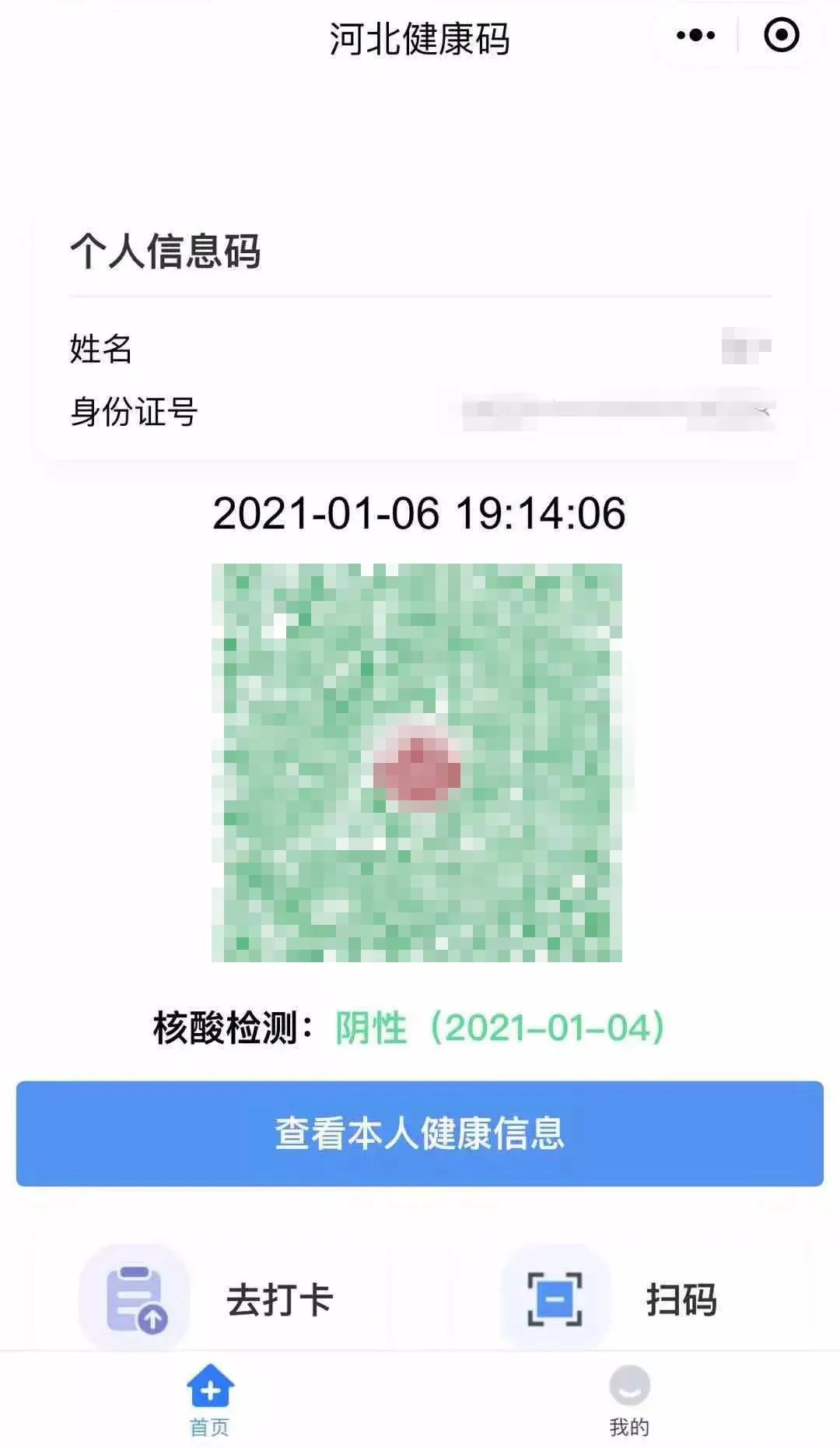 提示:“河北健康码”展示的核酸检测信息由河北省内医院或者指定机构提供,暂时仅支持在河北省内各医院或指定机构做的核酸检测。