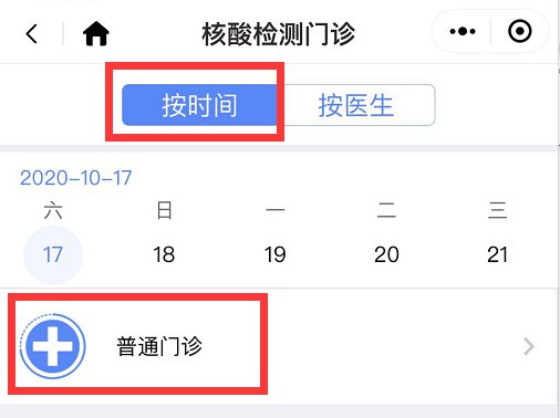 ③ 选择检测时间、时段→点击【普通门诊】
