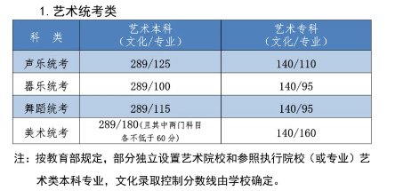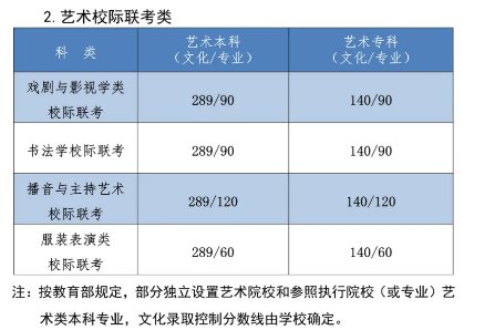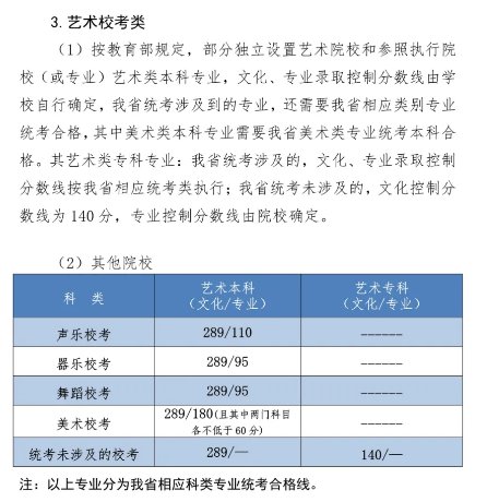 【注】部分独立设置艺术院校和参照执行院校(或专业)艺术类本科专业,文化录取控制分数线由学校确定。