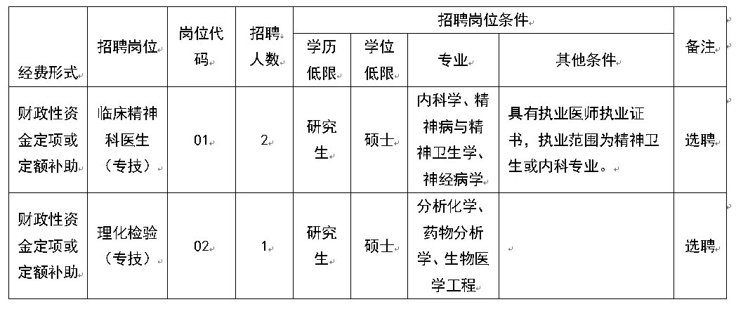 秦皇岛市第五医院公开招聘工作人员岗位要求详见下表