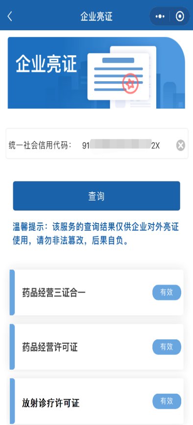 2、输入想要查询的企业统一社会信用代码,即可看到该企业所办理的电子证照,点击相对应的名字可查看电子证照图片。还可以在线对该电子证照核验真实与否。
