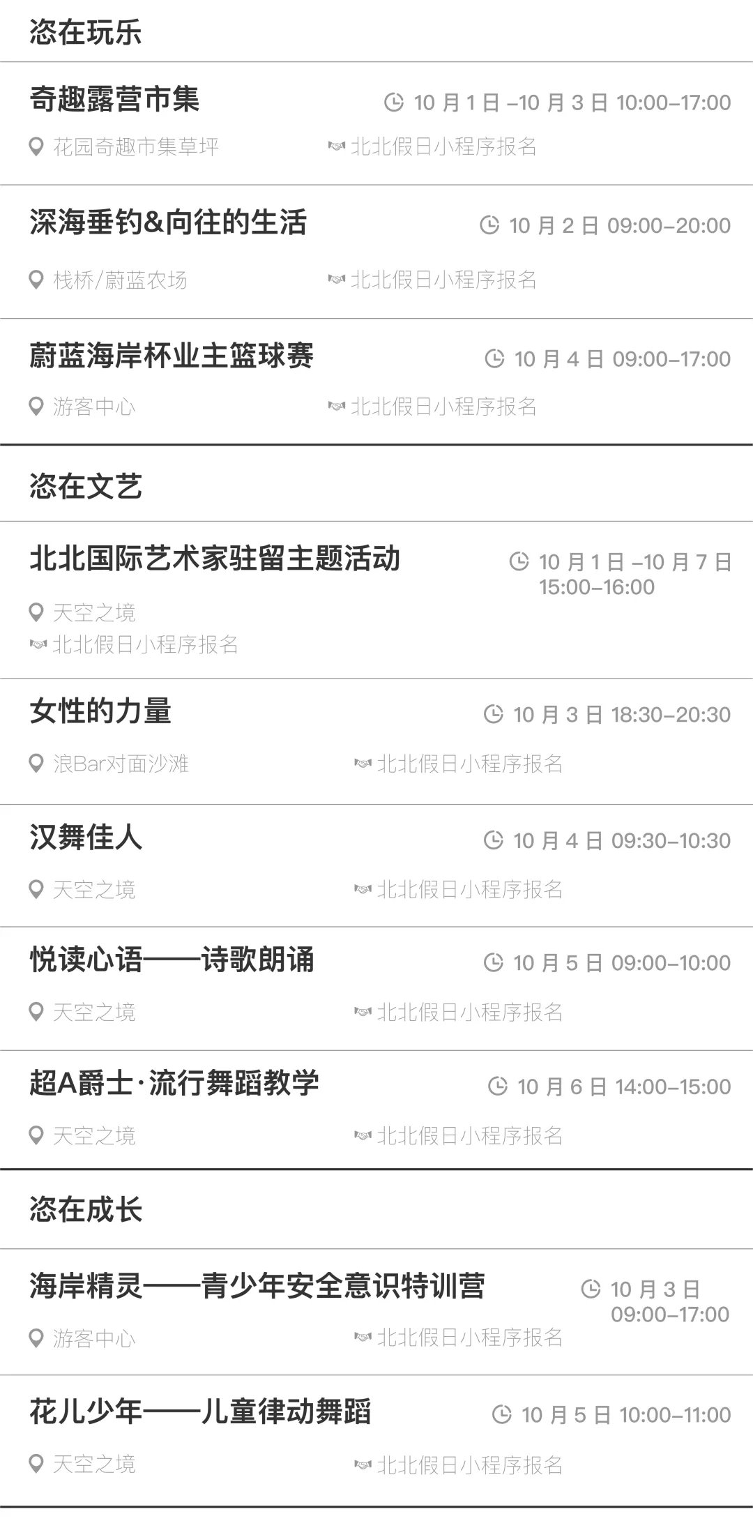 2021年9月16—10月17日【国庆节】假期可参加活动