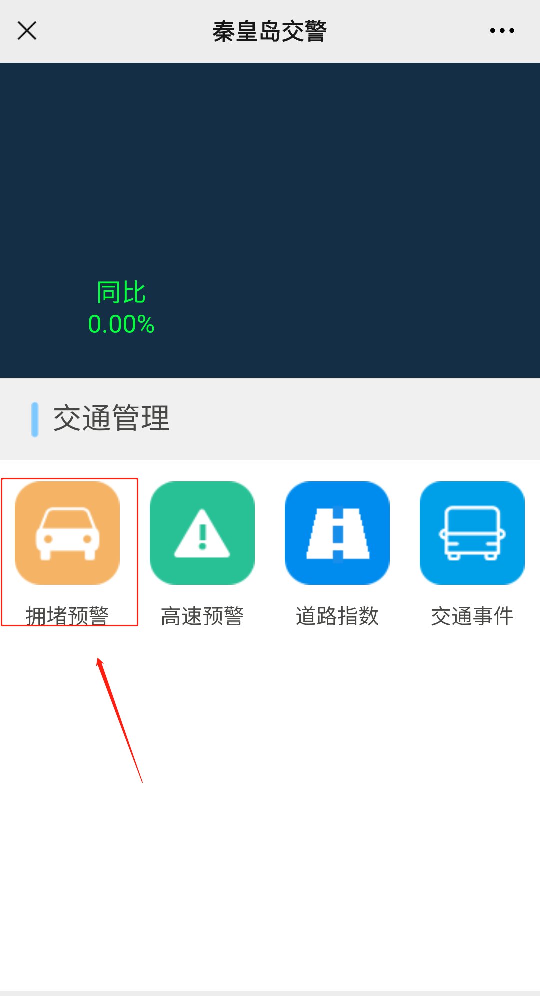 2、点击页面中的拥堵预警,可看到秦皇岛市各城区、县的拥堵情况。