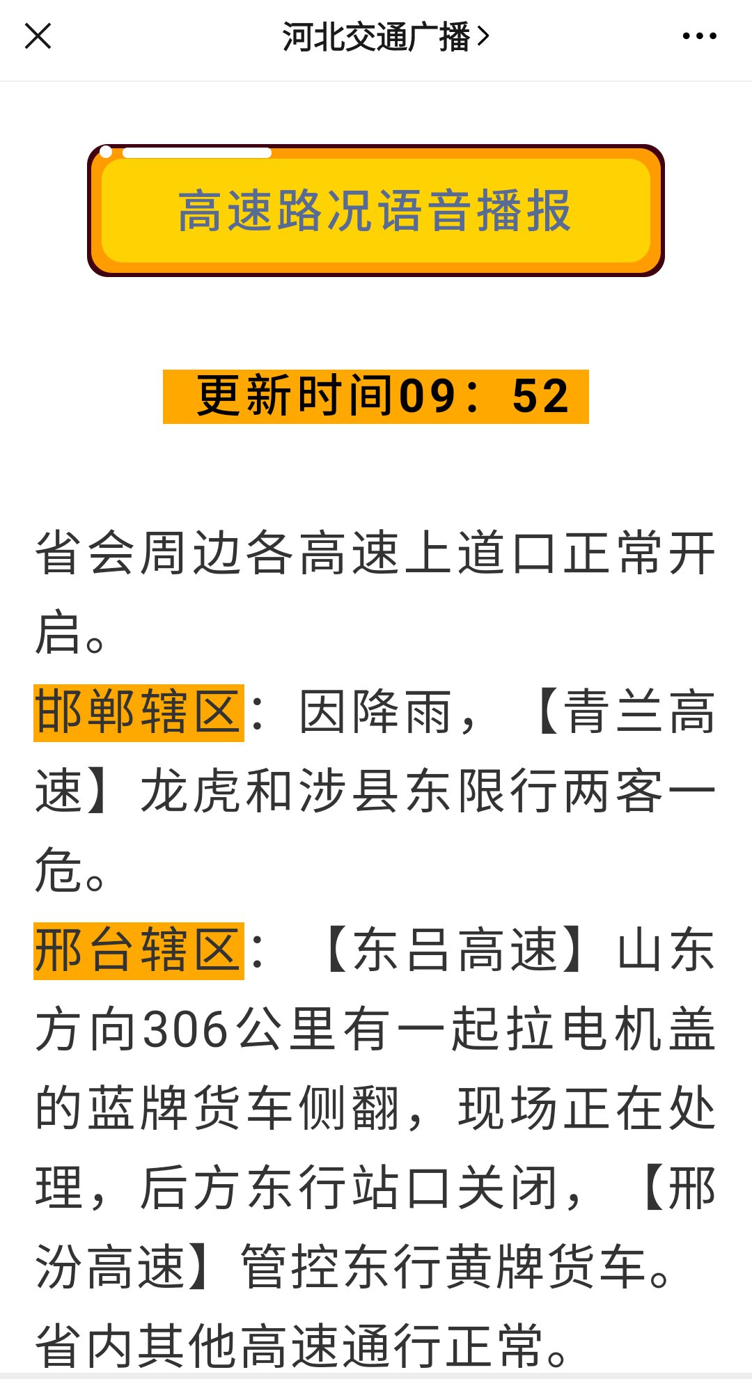 2、点击【路况播报】可查看每日最新的河北省高速情况,有特殊的通行限制道路会第一时间发布。