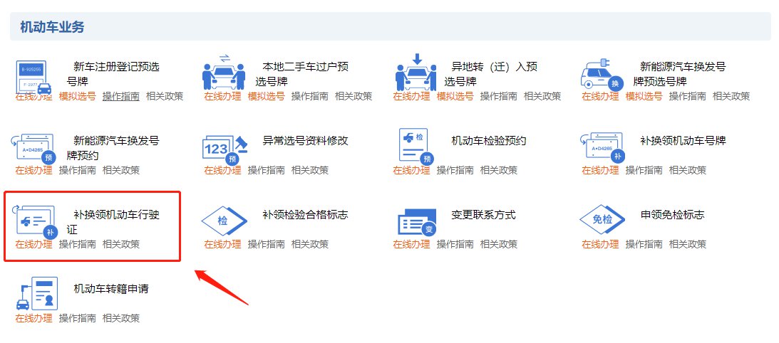 1.点击进入》》河北公安交通管理局服务平台,注册/登录成功后点击【机动车业务】→【补换领机动车行驶证】进入补换领机动车行驶证业务流程。