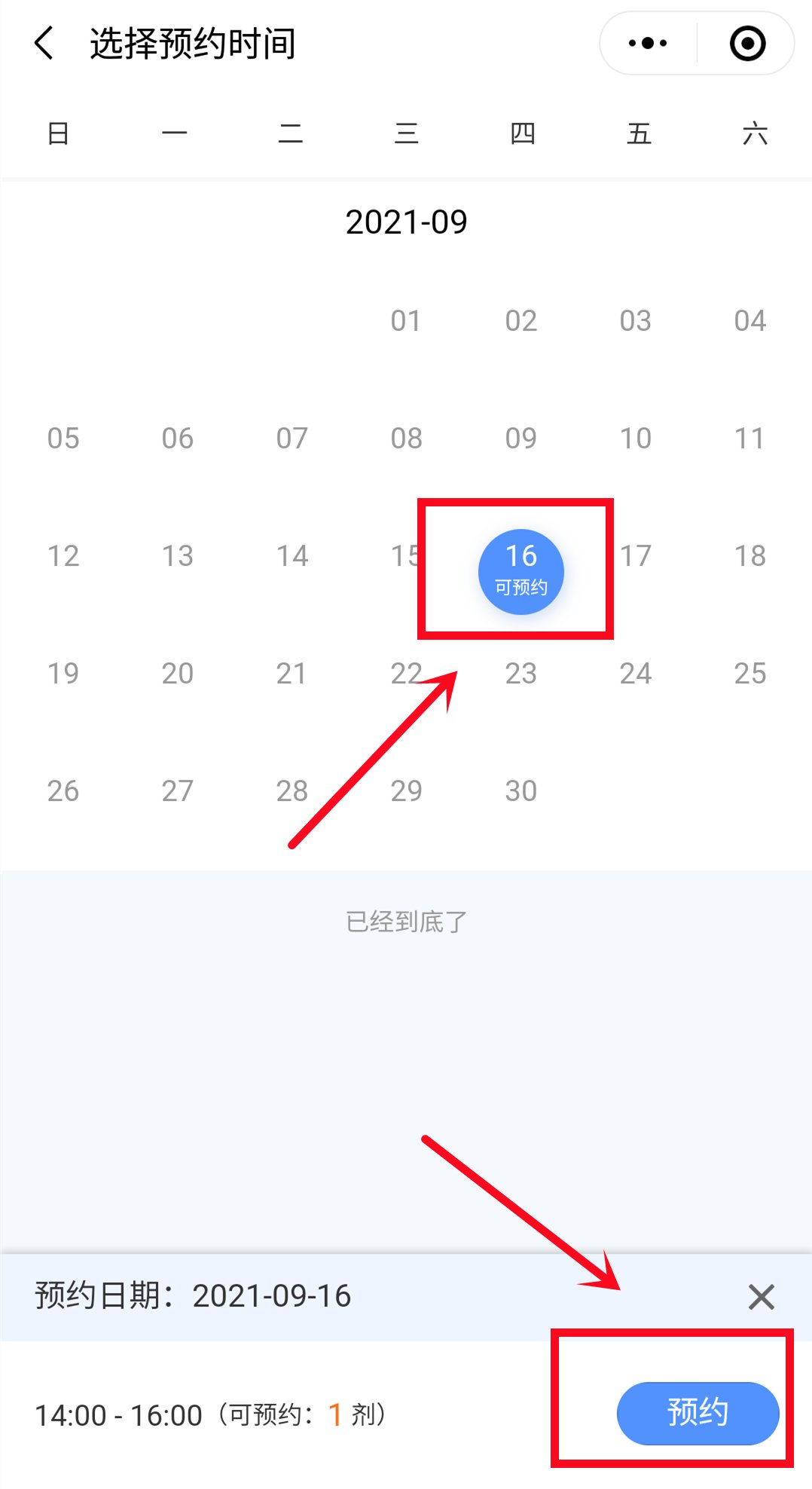 4、选择预约的日期和时间,点击预约