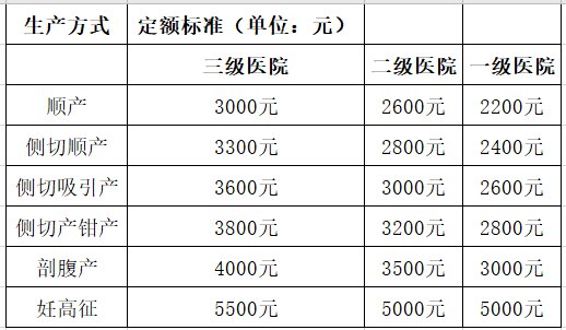 参保人员因生育发生的医疗费用按不同生产方式定额结算,具体标准见下表: